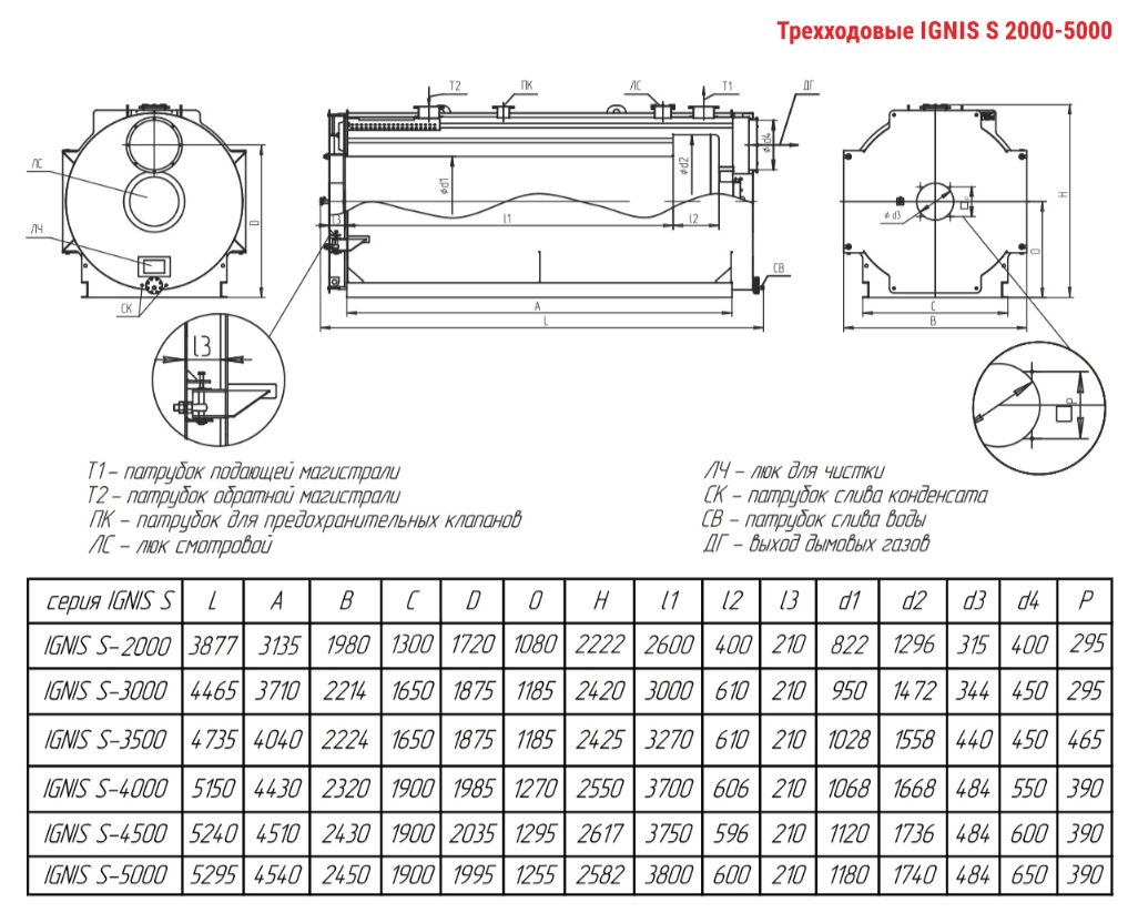 Технические характеристики водогрейного трёхходового котла ARCUS IGNIS S-2000